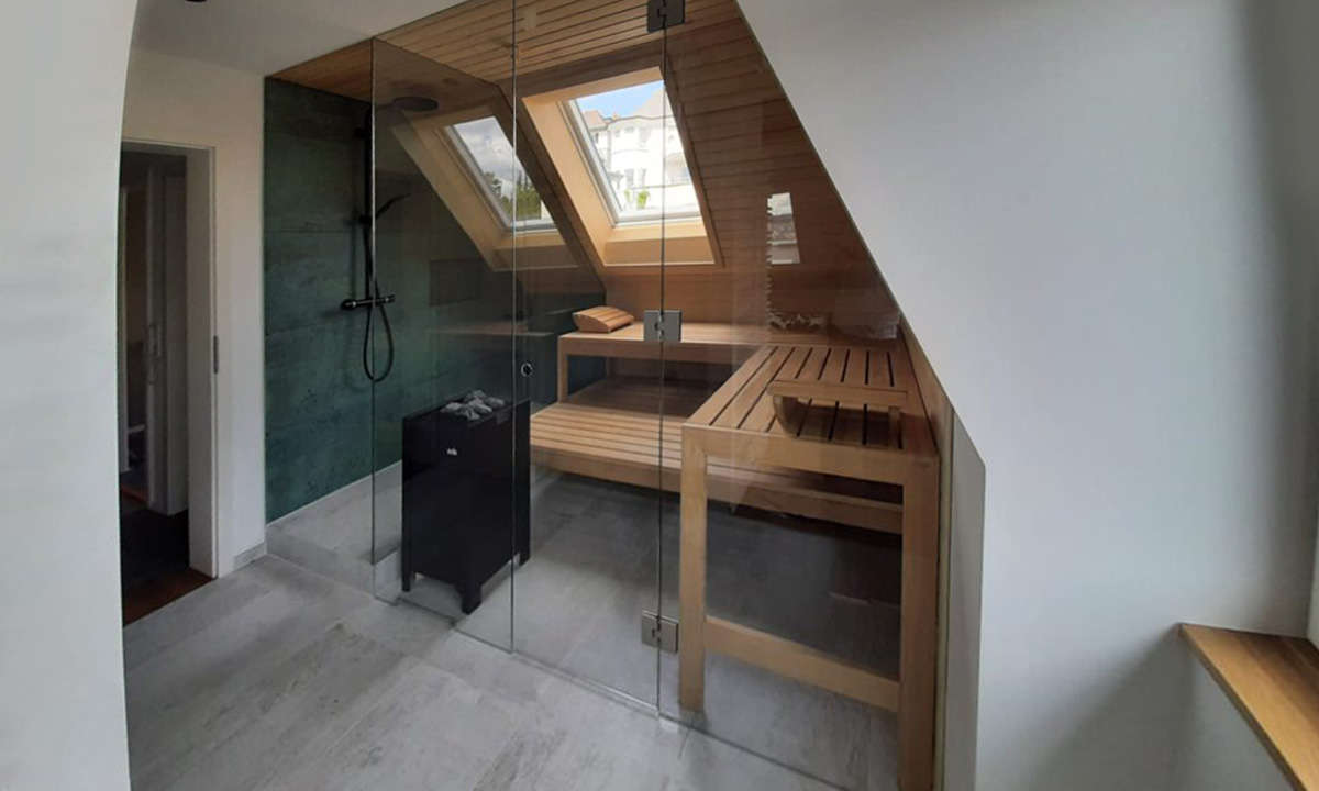 Bei uns bekommen Sie eine Innensauna nach Maß. Denn wir passen uns an die Gegebenheiten vor Ort an! Mit unseren Normsaunen und einem Rastermaß von 8 cm bauen wir perfekte Wohlfühllösungen für jeden Raum. Wir integrieren Dachschrägen, Fenster und Wände in allen Winkeln. Die Standardhöhe beträgt dabei 204 cm, bis zur Decke liefern wir eine Verblendung.