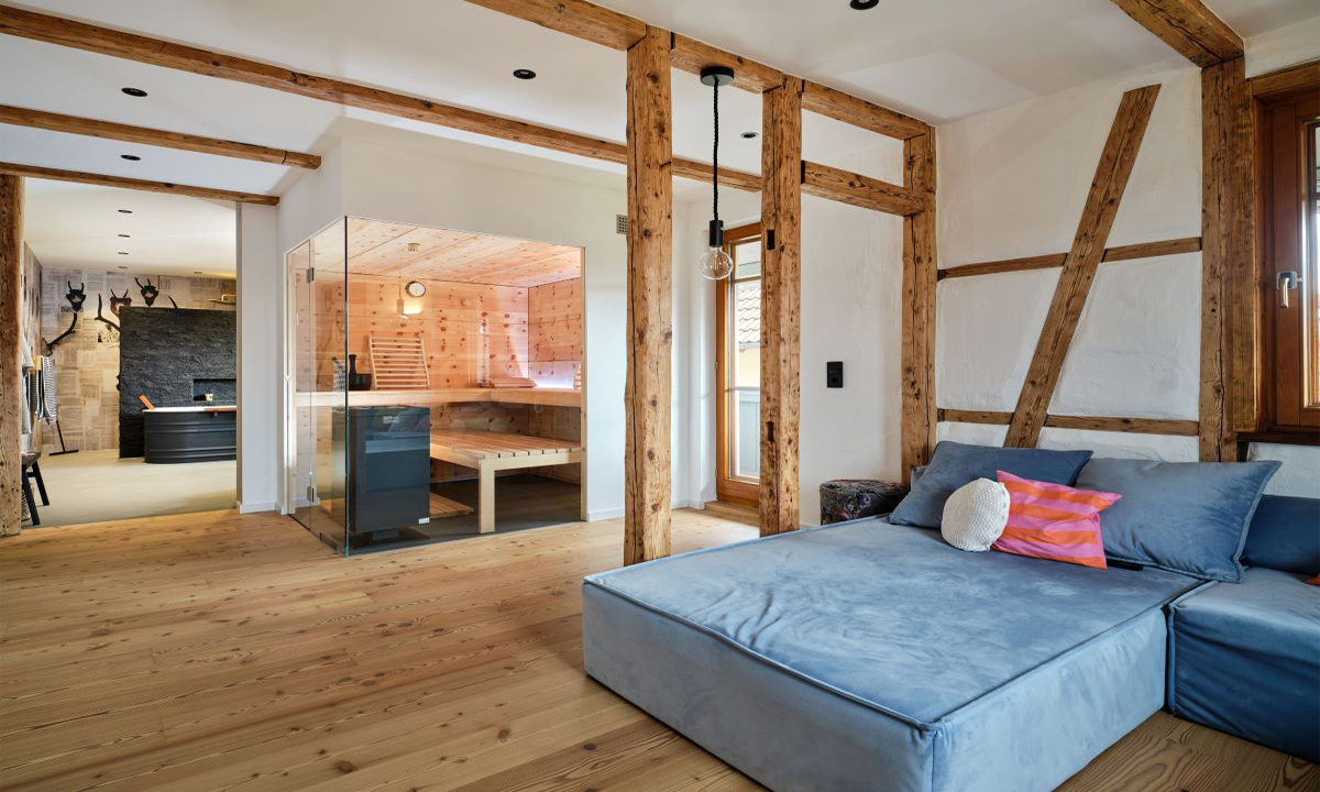 Ob großes Haus oder kleines: Meist hat man von vornherein eine Idee, was wohin kommt. Und dann stellen viele Menschen oft fest: Eine Innensauna wäre auch noch toll. Falls es Ihnen ähnlich geht – wir haben da eine Idee. Denn unterm Dach ist ein guter Ort für eine Sauna. Wir wissen, wie man den Platz optimal nutzt und das Schöne an einer solchen Sauna mit Charakter: Sie haben den Himmel immer im Blick.