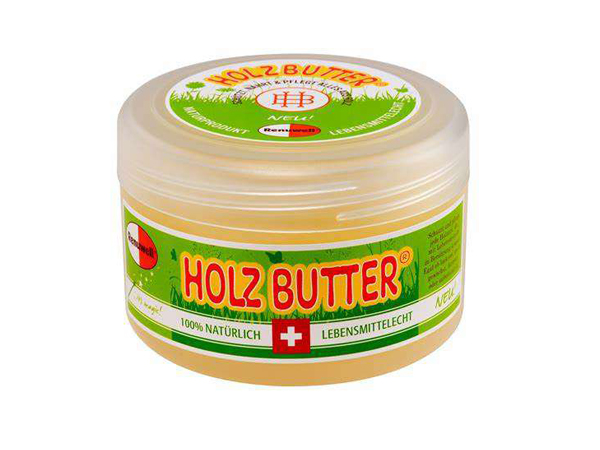 Schützt, nährt und pflegt. Holz-Butter passt sich an die Farbe des Holzes naturgetreu an. Das Holz bleibt auch nach der Anwendung atmungsaktiv.